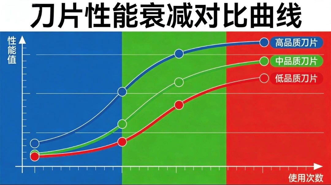 1. ثبات المادة: راقب ما إذا كانت صلابة الشفرة تتناقص بشكل منتظم أثناء الاستخدام